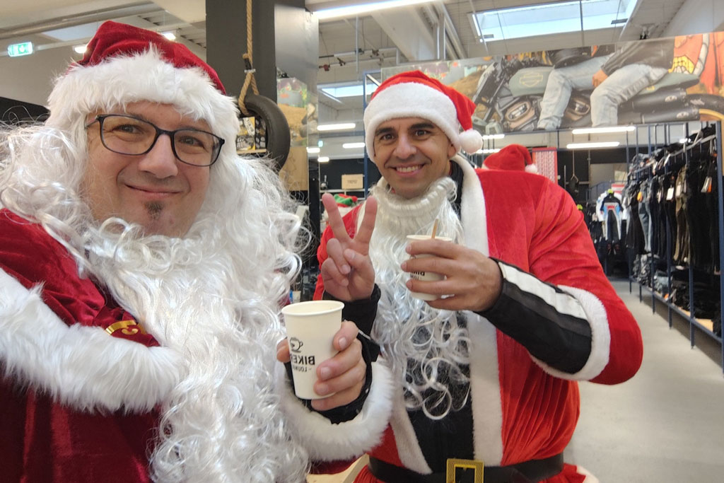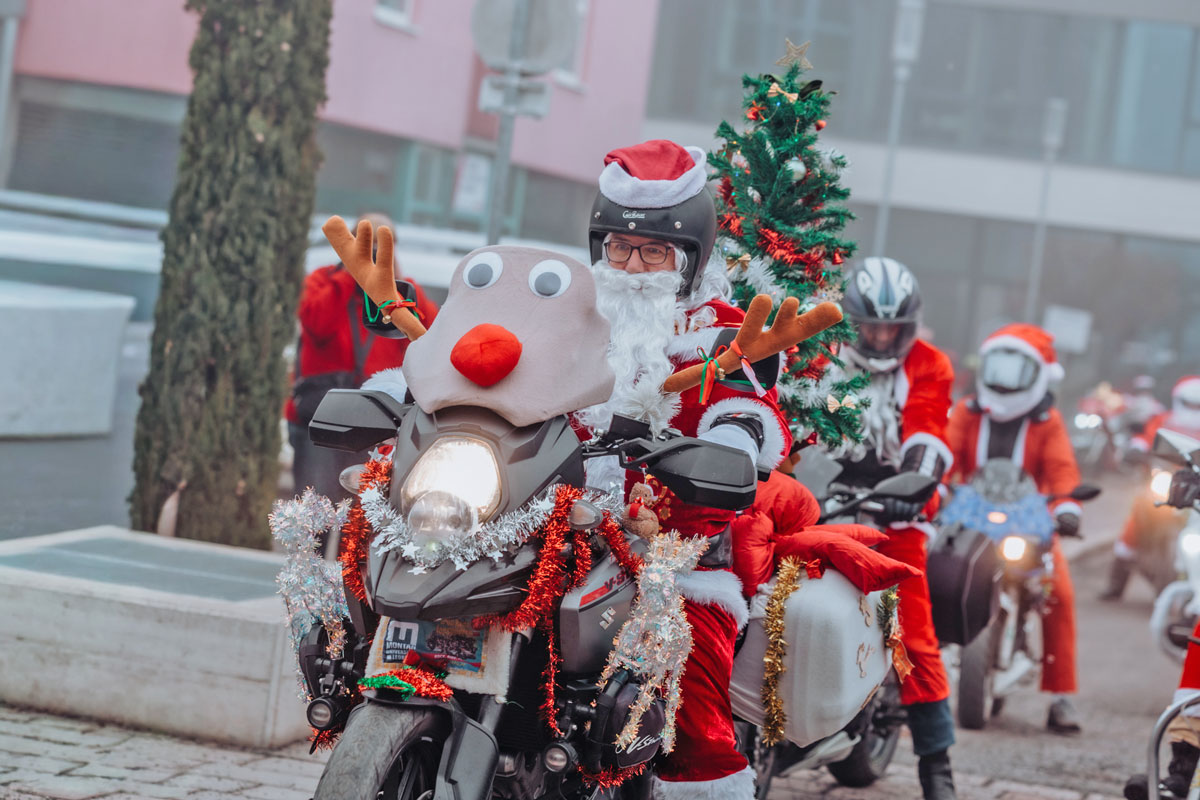 Weihnachtsmänner auf zwei Rädern, Lichterketten an Bikes, rote Mäntel über Lederjacken. Aber vor allem: Biker*innen, die trotz Kälte aufsteigen, weil es einen Grund gibt. Einen richtig Guten.