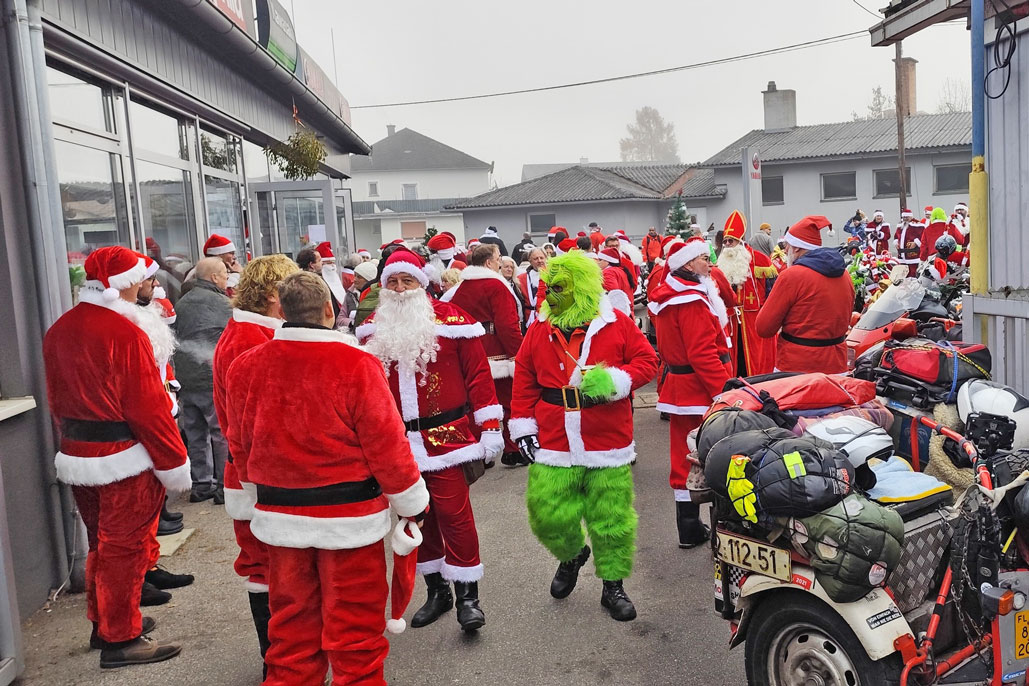Der Startschuss fiel bereits um 09.30 Uhr am Vormittag. Die bunte Truppe aus Weihnachtsmännern, Grinch und Rentieren startete ihre Motoren der festlich geschmückten Motorräder. Entlang der Strecke bleiben Menschen stehen, winken und zücken Handys. Kinder lachen und sogar Erwachsenen bleibt der Mund offen stehen. Denn Motorräder im Winter haben immer etwas Besonderes. Und wenn diese dann noch im coolen Weihnachtslook getuned sind, hat man die Aufmerksamkeit ganz klar auf seiner Seite. Nach vielen Zwischenstopps rollte der Konvoi schließlich im Weber Grillcenter in Seiersberg ein. Bei ausgelassener Stimmung und vielen Gesprächen klangen Kekse und gute Laune bis in die Open-End-Party hinein.