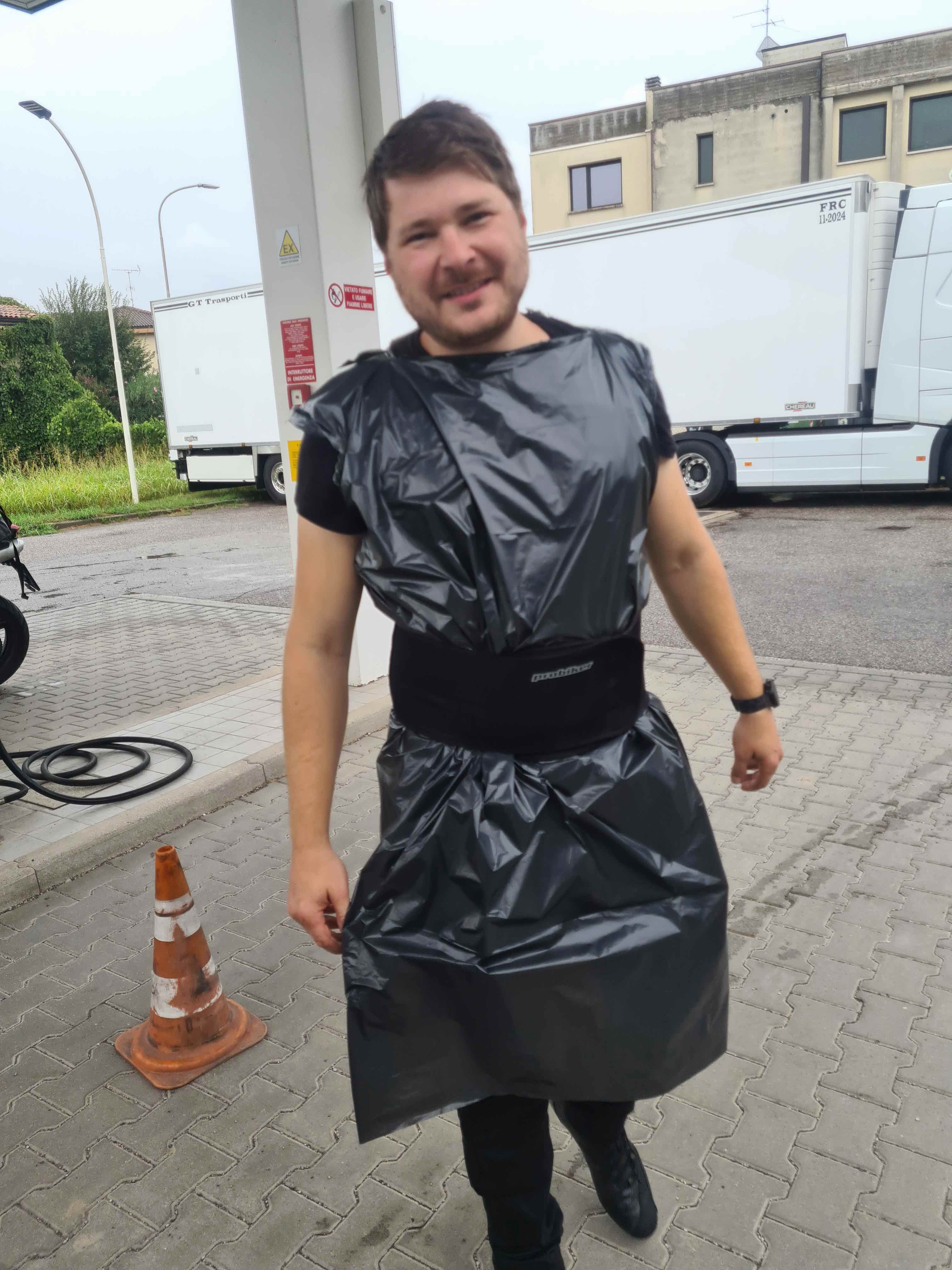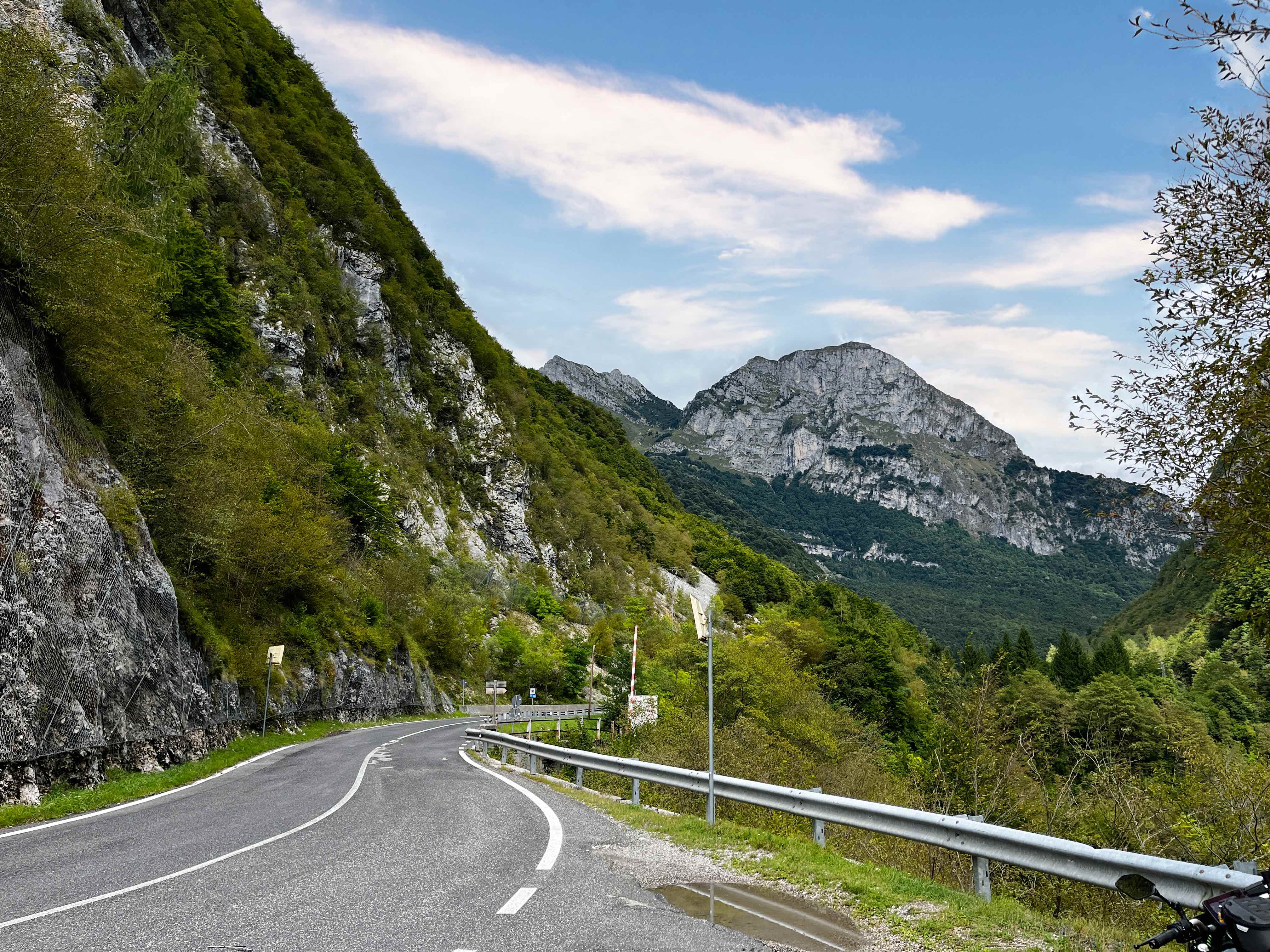 Auf der SR646 bin ich dann meiner Nemesis begegnet: ein Tunnel mit Kopfsteinpflaster, schlechter Sicht und Kurve führten zum unvermeidbaren Sturz. Dank des ÖAMTC und einer engagierten Werkstatt in Gemona konnten wir unsere Tour aber trotz einiger Blechschäden fortsetzen. An dieser Stelle muss ich unsere Motorrad-Jeans erwähnen, die diesen Härtetest mit Bravour überstanden hat.