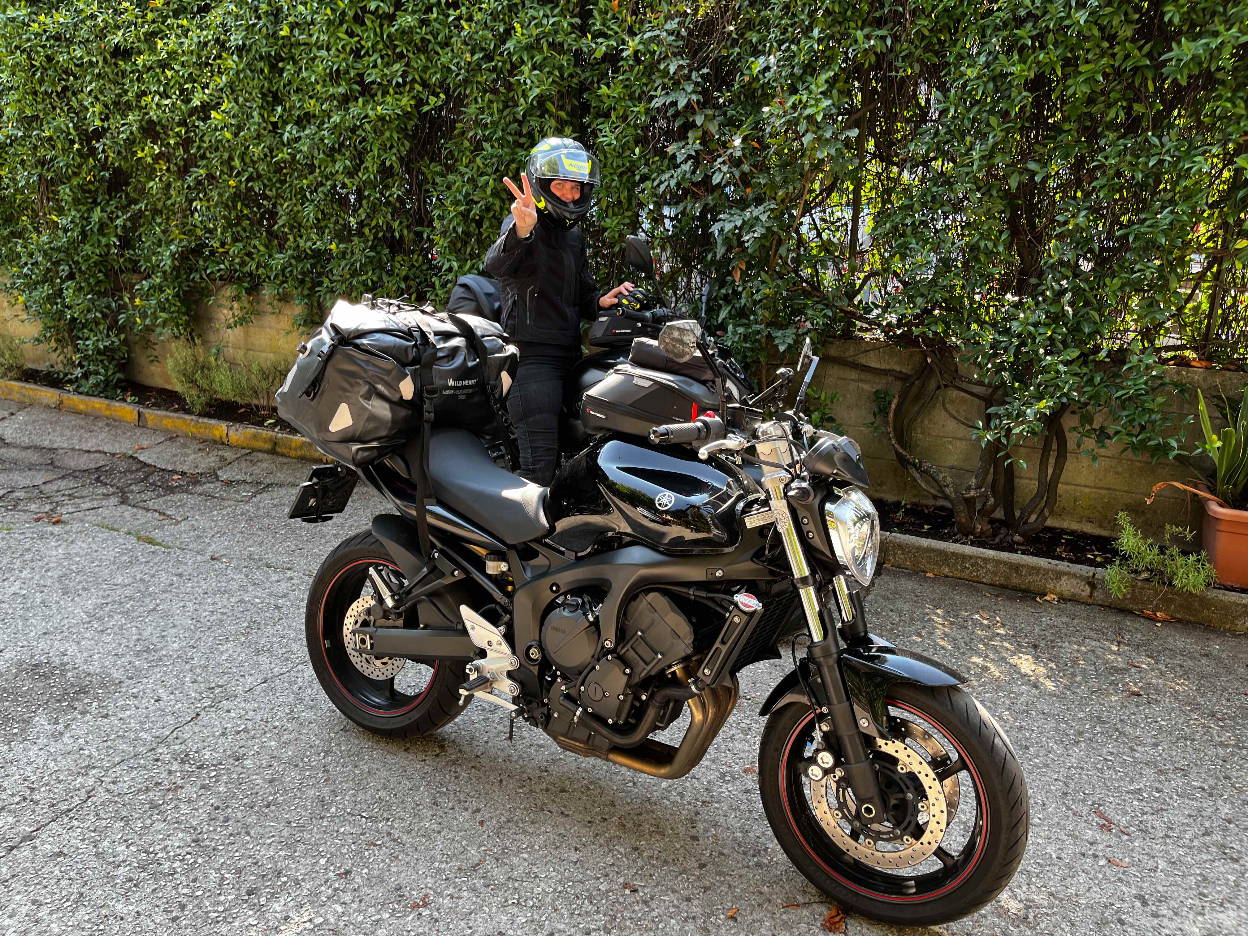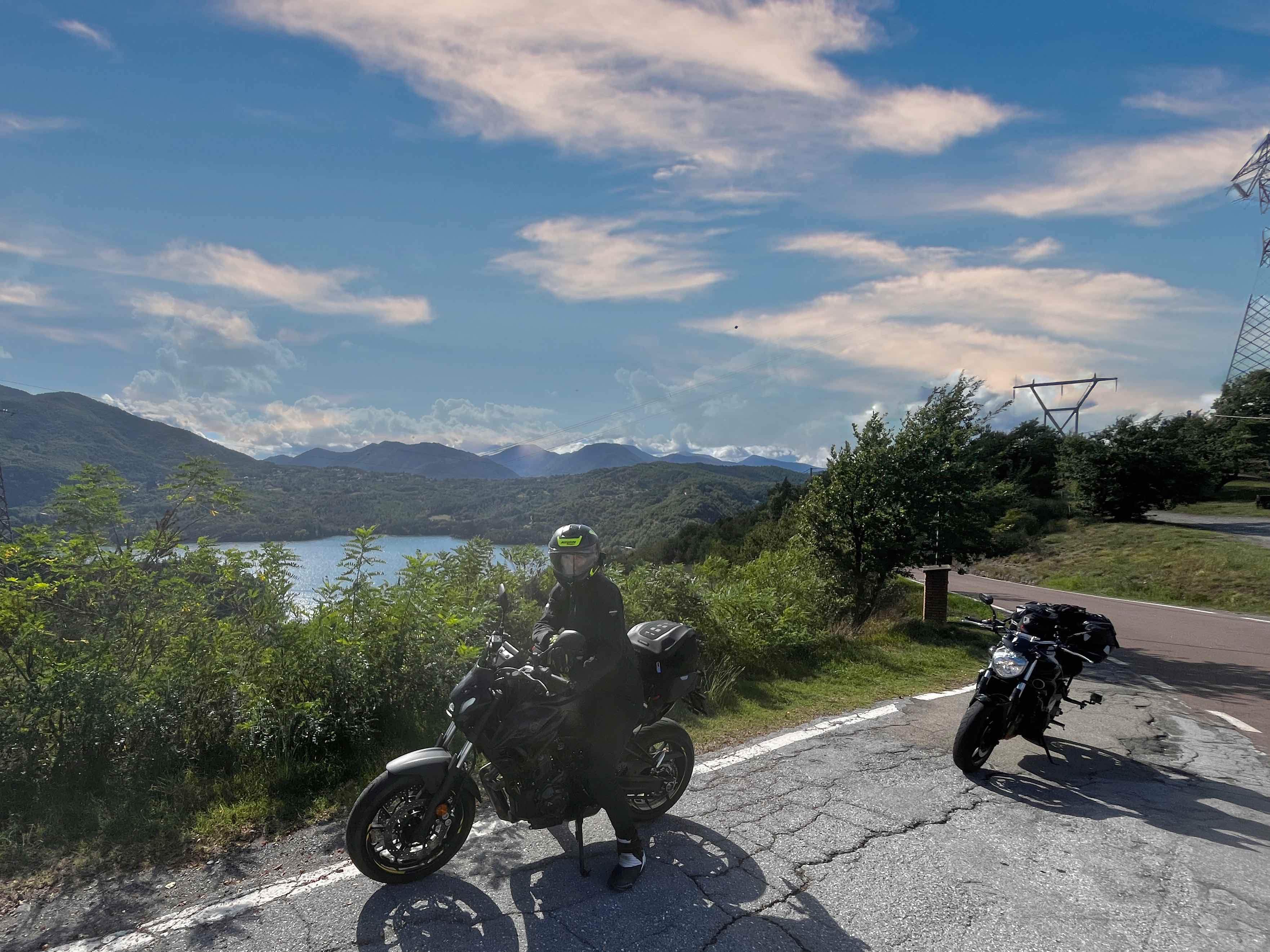 - Yasmin (Yamaha FZ-6N 2017): der Vierzylinder braucht eine wesentlich höhere Drehzahl, um die Leistung ideal abzurufen. Das macht es insbesondere bei sehr kurvenreichen Straßen mit schlechter Fahrbahn etwas weniger komfortabel. Aufgrund der Körpergröße von Richard sind lange Touren nicht optimal, weshalb kurz- bis mittelfristig der Umstieg auf eine Ténéré erfolgen wird. Mit der machen dann sogar die italienischen Schlaglöcher Spaß.