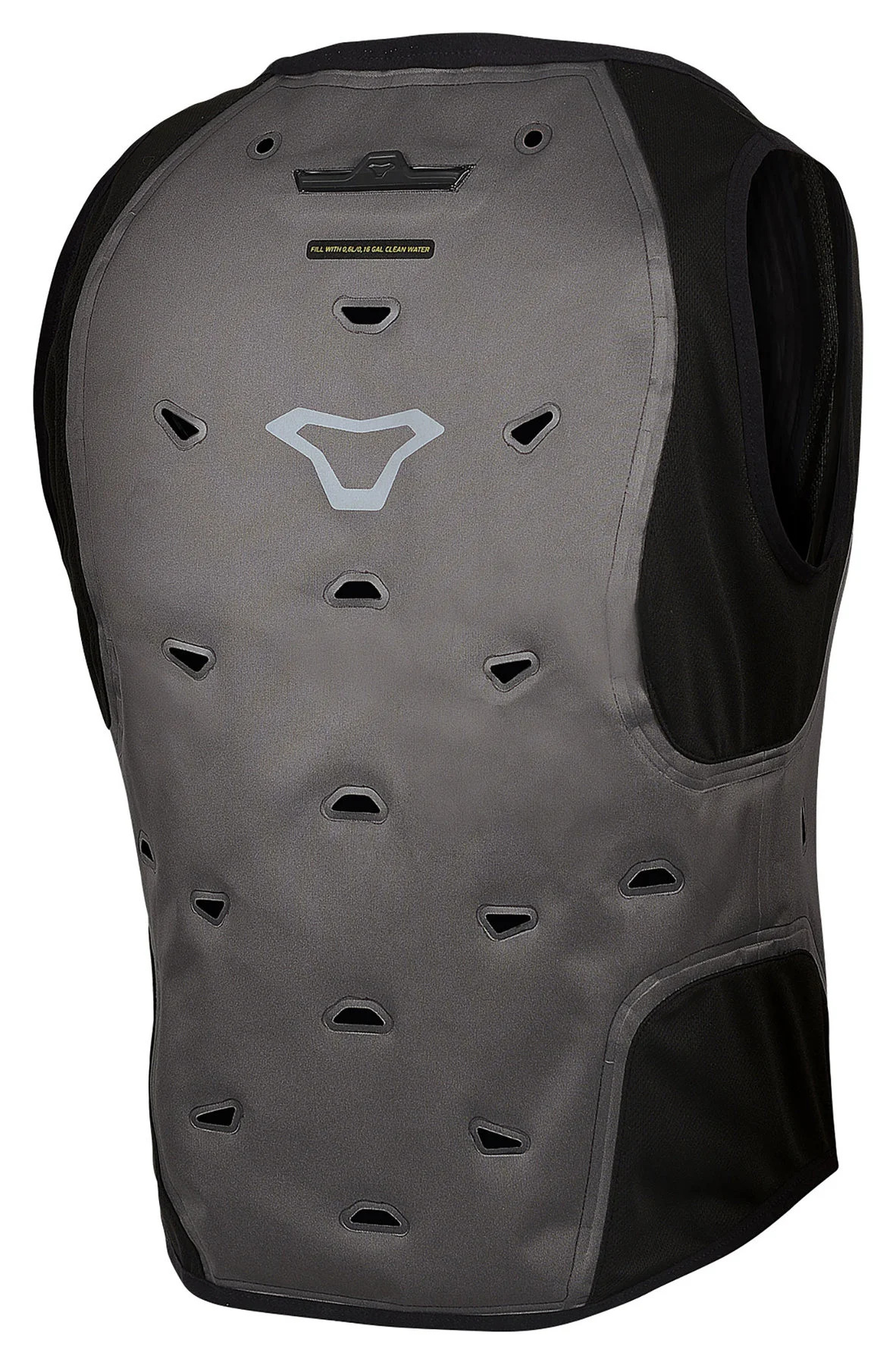 Die Kühlweste wird auf der Rückseite mit bis zu 600 ml kaltem Wasser befüllt. Danach wird sie auf den Boden gelegt, um die Flüssigkeit gleichmäßig zu verteilen. Somit ist die Macna Cooling Vest Evo schnell einsatzbereit und die Kühlung beginnt sofort. Getragen wird sie unter der Motorradjacke. Die Wärme des Körpers und der umgebenden Luft lässt das Wasser im Inneren der Weste verdampfen. Dies bewirkt eine Abkühlung der Haut. Der Hersteller verspricht, mit einer Füllung drei Tage einsatzbereit zu sein und bis zu 15° C runter zu kühlen. Das Material ist antibakteriell und sogar waschbar.