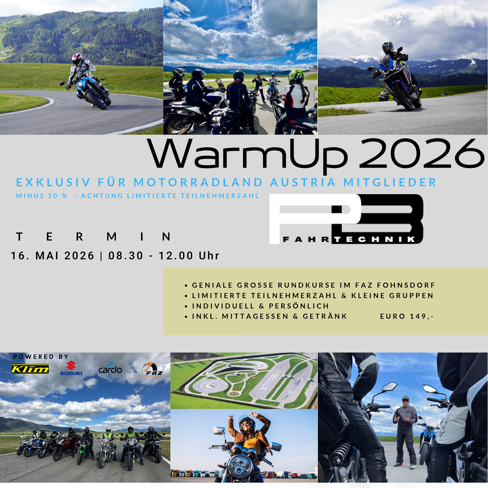 Einfach draufsetzen und losfahren? Klar, geht immer. Aber wer wirklich sicher, souverän und mit voller Kontrolle in die neue Saison starten will, sollte sich schon jetzt den 16. Mai 2026 rot im Kalender anstreichen und einen der limitierten Plätze sichern.