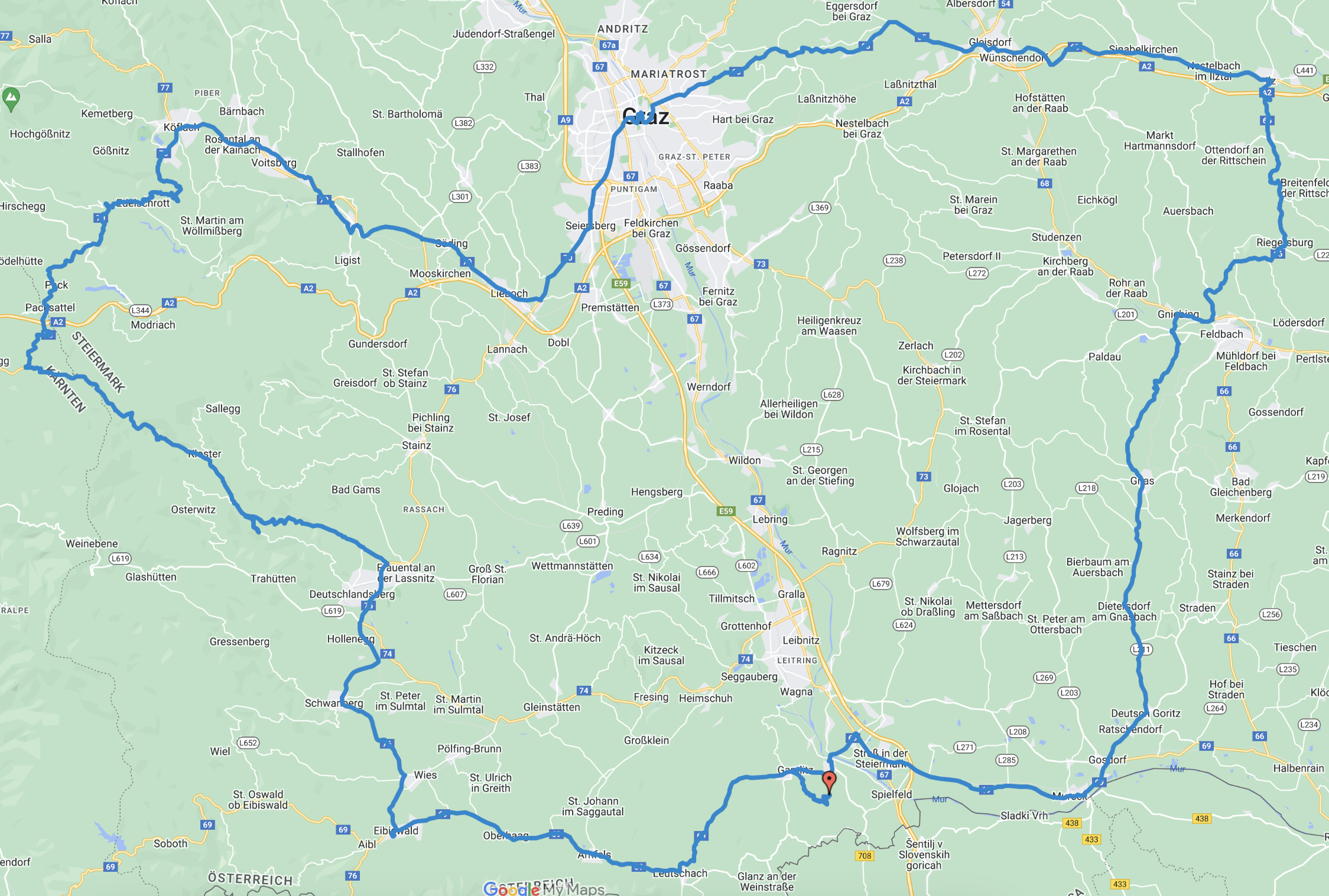 Von Ehrenhausen geht es zunächst nach Gamlitz, einem bekannten Anbaugebiet für beste Weine. Auf gemütlichen Straßen führt die Tour bis nach Deutschlandsberg. Dann geht es auf einer kurvenreichen Strecke über die Hebalm auf 1.400 m Seehöhe. Dieser Abschnitt ist sehr gut ausgebaut und bietet Bikerfeeling satt. Über die Pack fahren wir weiter nach Köflach und schließlich in die Steirische Landeshauptstadt Graz. Hier gibt es unendlich viel zu sehen und genügend Einkehrmöglichkeiten für ein lokales Mittagessen.