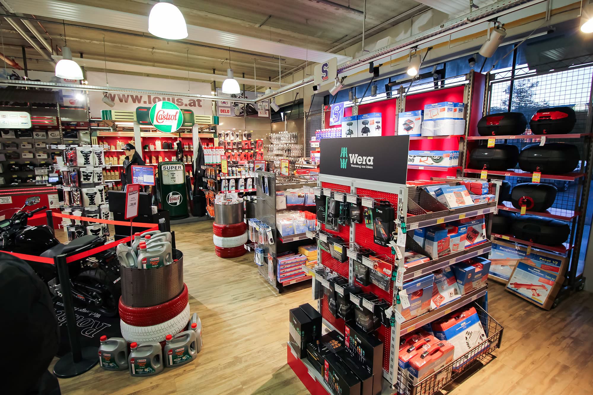 LOUIS Motorrad ist die Nummer 1 unter den Filialisten. Es gibt wohl kaum jemanden, der den Namen nicht kennt. Das Sortiment umfasst mehr als 50.000 Artikel und bietet dir eine Produktpalette aus Motorradhelmen, Motorradbekleidung, Zubehör, Werkzeug, Ersatzteilen, Pflegemitteln und Geschenkartikeln. In Österreich findest du insgesamt zehn Standorte. Damit werden alle großen Einzugsgebiete abgedeckt.