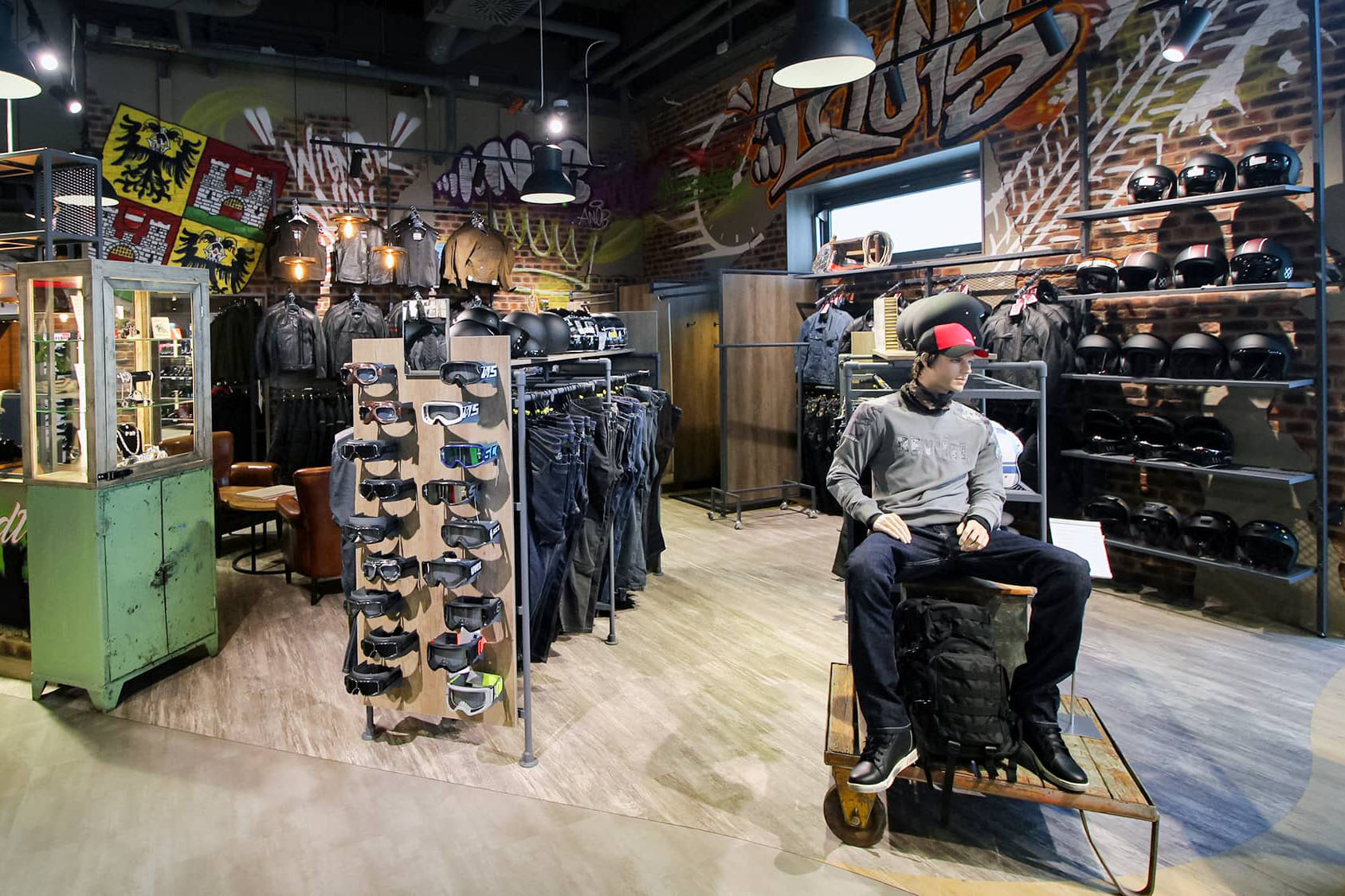 Deine Einkaufsreise beginnt direkt am Eingang und reicht bis in die hintersten Winkel. Motorrad soweit das Auge reicht. Die Geschäfte sind groß, weitläufig und vollgepackt mit allem, was du und dein Bike brauchen. Du gehst rein und siehst Hunderte Helme an der Wand. Du probierst an, vergleichst und stöberst. Die Auswahl ist kompromisslos.
