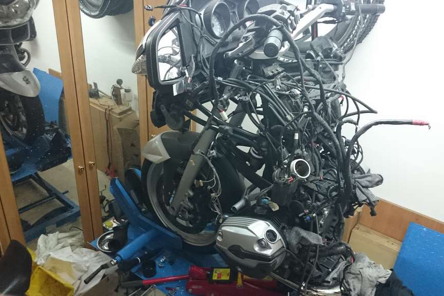 Wolfgang restauriert auch komplette Motorräder. Das braucht Zeit und Geduld, doch das Ergebnis ist ein Bike, das wieder läuft wie am ersten Tag. Auch Endantriebe der BMW R1200GS werden neu gelagert, wenn sich erste Geräusche bemerkbar machen.