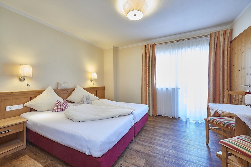 Im Haus selbst geht es bodenständig und herzlich zu. Die Zimmer sind gemütlich eingerichtet, mit viel Holz und Blick auf die umliegende Bergwelt. Alles wirkt warm, vertraut und ohne Schnickschnack. Zum Frühstück erwartet dich eine regionale Auswahl, die Kraft gibt für den Tag: hausgemachte Marmeladen, frisches Brot, Käse aus der Region und guter Kaffee. Ruhe, Wellness und das aufrichtige Gefühl, willkommen zu sein.