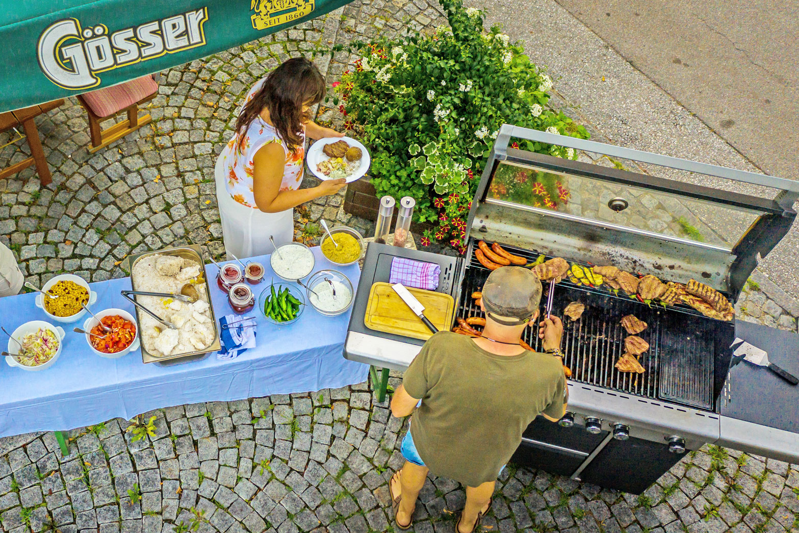 Gastgeber Andi ist zertifizierter Tourenguide und Koch – eine seltene Kombination. Morgens gibt es ein reichhaltiges Frühstück, abends zaubert er am Grill oder in der Küche seine GenussWirt-Spezialitäten. Der Steckerlfisch ist legendär, die regionalen Schmankerl ehrlich und bodenständig. Nach der Tour sitzt du mit Gleichgesinnten auf der Terrasse am Marktplatz, tauschst Geschichten aus und genießt die entspannte Atmosphäre. Sauna und Infrarotkabine helfen dabei, die Muskeln zu lockern, wenn es mal wieder länger geworden ist.