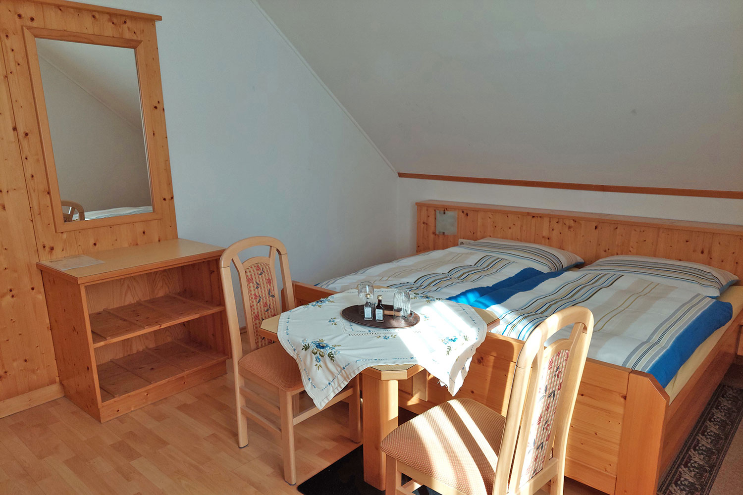 Eva und Robert sind selbst leidenschaftliche Biker. Sie wissen, wie ein guter Motorradurlaub sich anfühlen soll und was nach einem langen Tag am Bike gut tut. Ihr Gästehaus führen sie seit vielen Jahren mit viel Herz, Wärme und Aufmerksamkeit fürs Detail. Die Zimmer sind individuell mit Tischlerhandwerk eingerichtet. Alles wirkt liebevoll, persönlich und ehrlich. Du wirst dich sofort wohlfühlen.