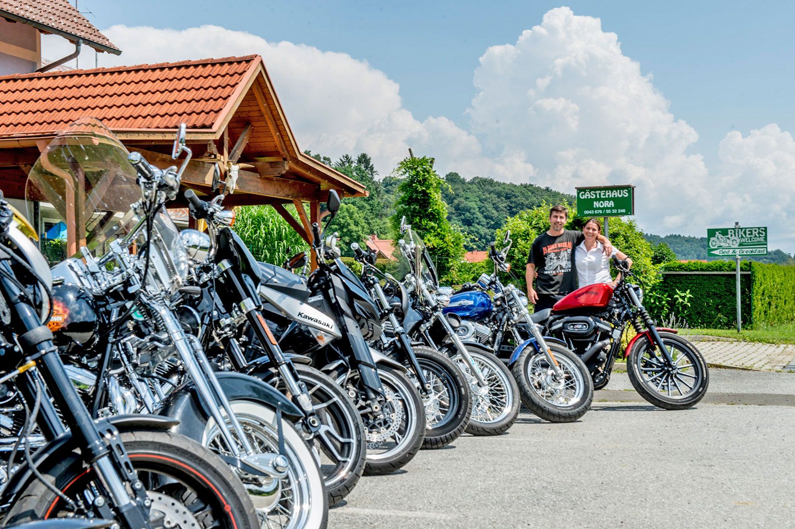Für deinen Motorradurlaub in Österreich ist die Lage ideal. Die steirischen Weinstraßen mit ihren kurvigen Strecken durch die Weinberge liegt direkt vor der Tür. Das Thermen- und Vulkanland bietet unzählige Motorradtouren durch sanftes Hügelland. Auch Ungarn und Slowenien liegen nur einen kurzen Dreh am Gashebel entfernt. Zwar findest du unzählige Tourenvorschläge in der Biker-Ecker, doch am besten lässt du dich von Nóra und Georg inspirieren. Sie kennen jeden kleinen Winkel und inspirieren dich vor Ort für deine nächste Ausfahrt.