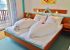 Du hast die Wahl zwischen Zimmern und Appartements für bis zu vier Personen. Alles schlicht, sauber und gemütlich. Genau richtig, wenn du nach dem Fahren einfach abschalten willst. Das Frühstück gestaltest du, wie es zu deinem Urlaub passt. Entweder du setzt dich in die Bäckerei ums Eck oder du genießt die Morgensonne auf der Terrasse mit selbst mitgebrachten Sachen. Dazu stehen Kaffee und kühle Getränke jederzeit bereit.