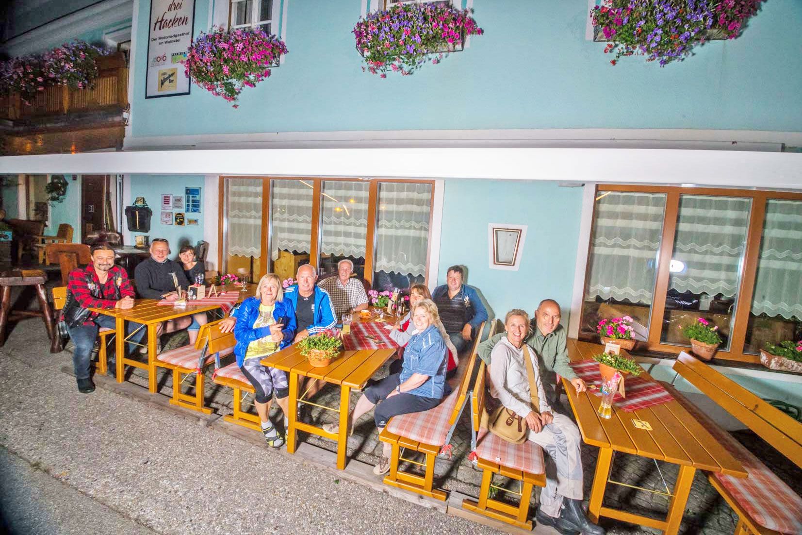 Gastgeber Andi ist zertifizierter Tourenguide und Koch – eine seltene Kombination. Morgens gibt es ein reichhaltiges Frühstück, abends zaubert er am Grill oder in der Küche seine GenussWirt-Spezialitäten. Der Steckerlfisch ist legendär, die regionalen Schmankerl ehrlich und bodenständig. Nach der Tour sitzt du mit Gleichgesinnten auf der Terrasse am Marktplatz, tauschst Geschichten aus und genießt die entspannte Atmosphäre. Sauna und Infrarotkabine helfen dabei, die Muskeln zu lockern, wenn es mal wieder länger geworden ist.
